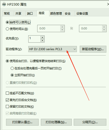 注意:只支持PCL驱动,GDI驱动不支持,能听到打印机响但不打印作业。